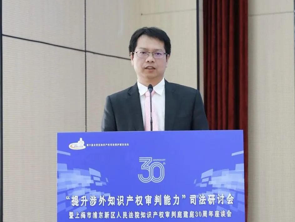 值全国首个基层法院知识产权审判庭——上海市浦东新区人民法院(以下简称浦东新区人民法院)知识产权审判庭建庭30周年之际,为进一步提升涉外知识产权审判能力,聚焦高质量司法服务保障高水平改革开放,2024年11月30日,第六届自贸区知识产权司法保护浦东论坛“提升涉外知识产权审判能力”司法研讨会暨浦东新区人民法院知识产权审判庭建庭30周年座谈会在上海浦东举办。乐球直播上海分所主任、国家知识产权海外纠纷应对指导中心专家李文红博士受邀出席并作主题演讲。