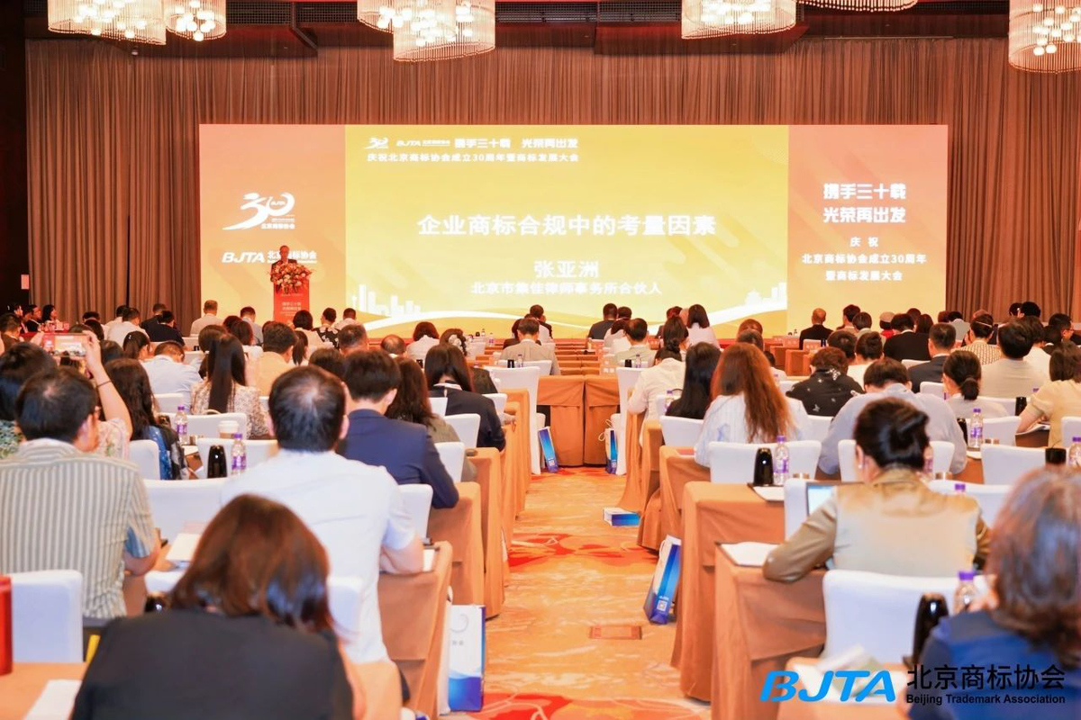 集佳合伙人张亚洲律师应邀出席北京商标协会成立30周年暨商标发展大会 并在主论坛上发表主题演讲